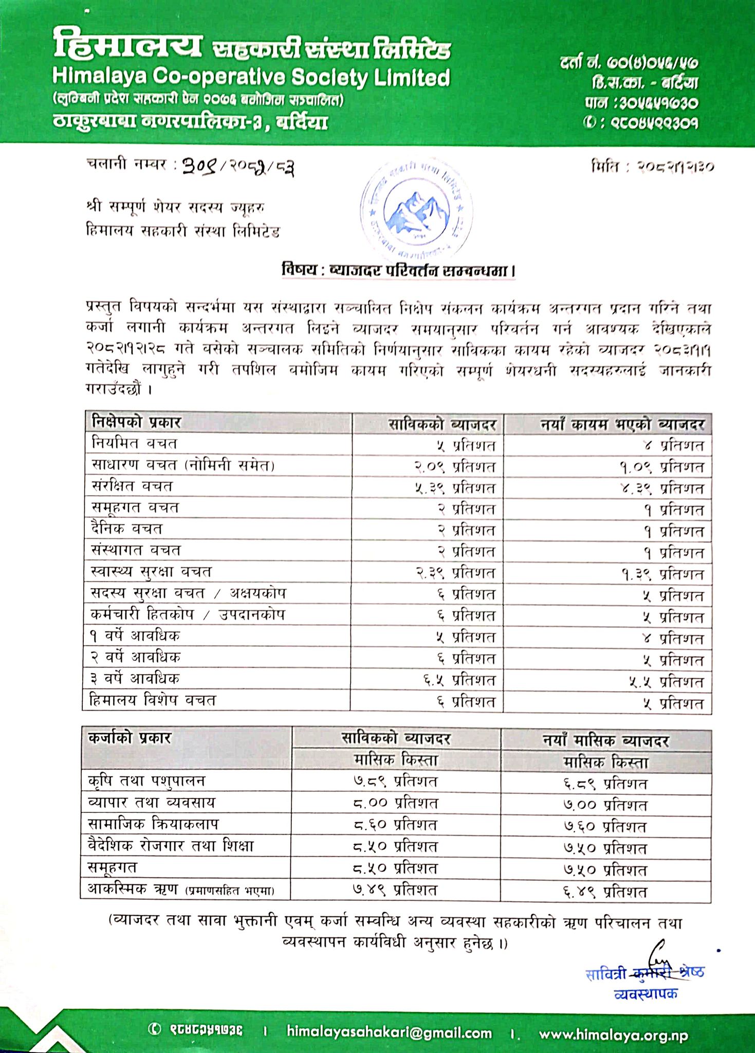 ब्याजदर परिवर्तन सम्बन्धि सूचना (२०८३ वैशाख)